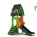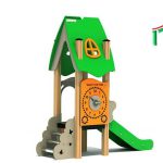 برج بارتفاع 0.6م مزود بفتحات شبابيك + سقف مصمم يشمل : حائط التسلق. الدرج. شريحة مستقيمة. لوحة لعبة الساعة.