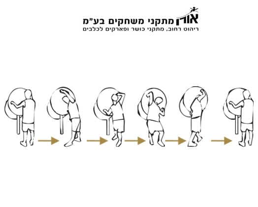 دليل الاستخدام: 1. اقترب من المنشأة. 2. أمسك المقابض الموجودة على الأقراص. 3. ابدئي بتحريكها بحركات دائرية حسب الشكل.