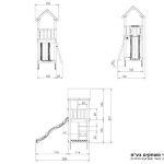 A combined wooden facility with one tower and a slide, unique and fun for children in the home yard. 1. Tower + fabric canopy including: