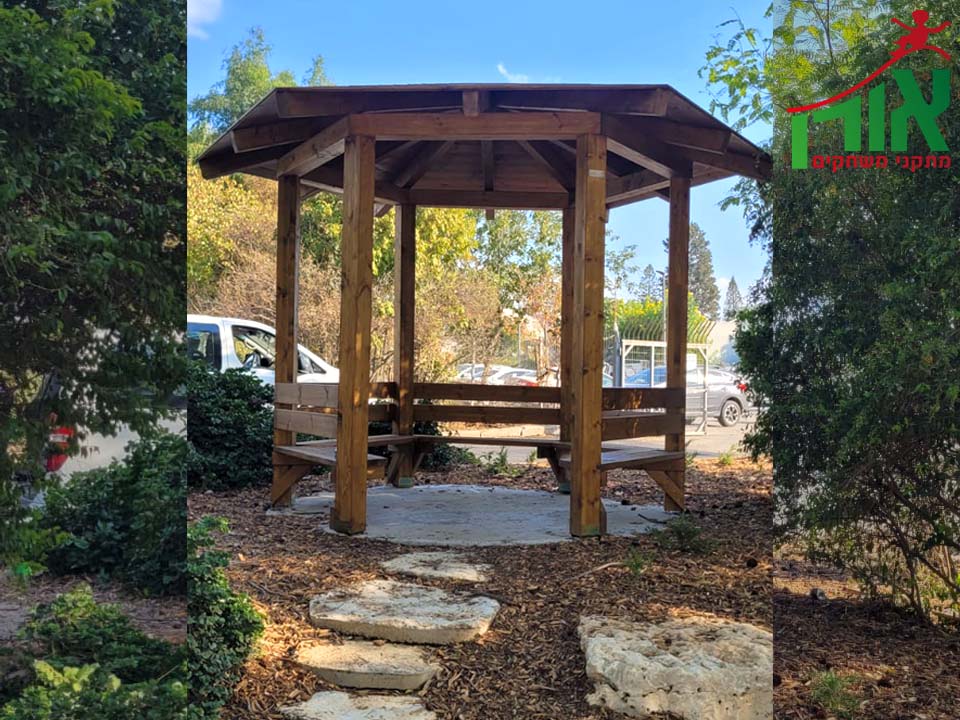 The Oren company specializes in the production and installation of wood and metal works. The wooden gazebo shed with a diameter of 3 meters is one of a variety of wooden and metal sheds and pergolas. A wooden gazebo shed is a shed with a wooden seating area.