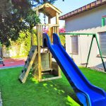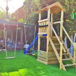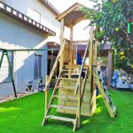 מתקן משחקים משולב מעץ לגינה פרטית.