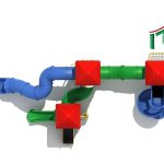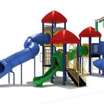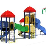 מתקן משחקים משולב ממתכת עם 3 מגדלים ואלמנטים.