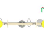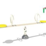 בקצות הקורה מותקן מושב מפלסטיק עגול בכל צד עם מאחז יד עגולים ממתכת.