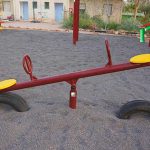 בקצות קורת הנדנדה נעוצים בקרקע צמיגים לבלימת מכת הנדנדה בקרקע".