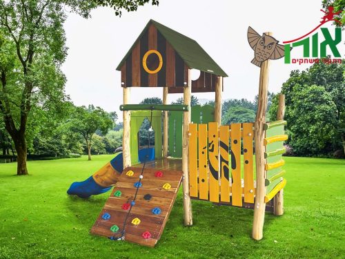 איזה כיף של מתקן! המתקן המעוצב בקפידה, עשוי עץ איכותי ובצבעים טבעיים ויפים, משתלב נפלא בכל גינה או פארק.