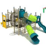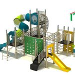 Комплексный комплекс для детей с разнообразными горками и вариантами скалолазания.