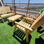 Классический комплект садовой мебели из дерева. В комплект входит: 1. Кресло односпальное * 2 шт. 2. Двуспальный диван-кровать. 3. Журнальный столик.