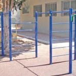 Дворовое сооружение для детских садов — лестница-лабиринт из металлических столбов (1325)