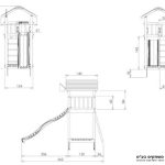 Размеры: Длина- 160 см. Ширина — 390 см. Высота — 280 см. 1. Башня + крыша в комплекте: Подъём по лестнице на башню. Волнистая горка. песочница.